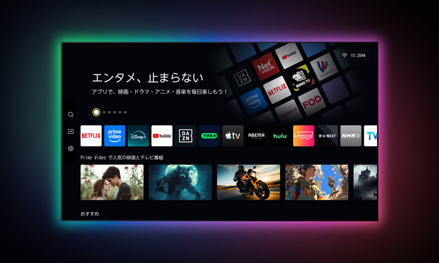 ハイセンス独自開発のお手軽スマートシステム「HOME OS」を搭載。パワーオンも、ボタン操作のレスポンスも、切り替えのアクセスもとにかく速いです。 国内外人気のネット動画アプリなどを数多くプリインストールしています。ダウンロードが不要で、手間なく世界中のエンタメを楽しめます。