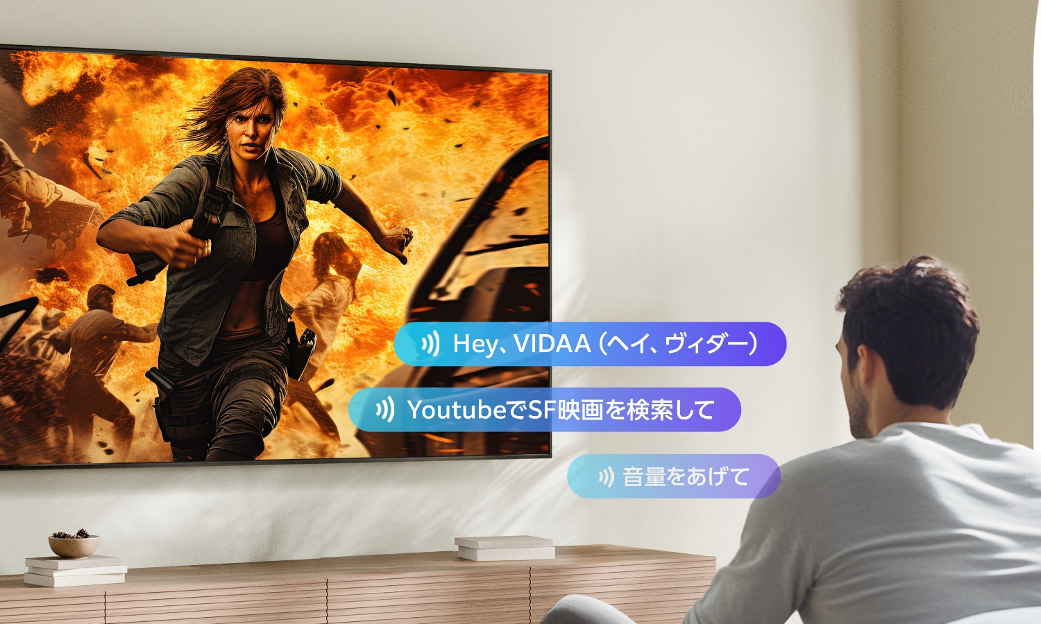 音量、入力切替、動画検索、ビデオ再生などを声で操作できます。 ハンズフリー仕様になりましたので、声掛けだけで、テレビを操作できます。リモコンが見つからない時に便利です。