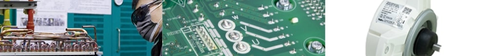 ハイセンスのエアコンは日本向けの専用ラインで生産しています。自動化された生産ラインにより、製品品質の向上・安定を図りつつ、機械化できない複雑な部分は熟練工による組み立てを行っています。また、耐熱性ガラス基板を採用し、安全性・耐火性向上となる設計を行っています。