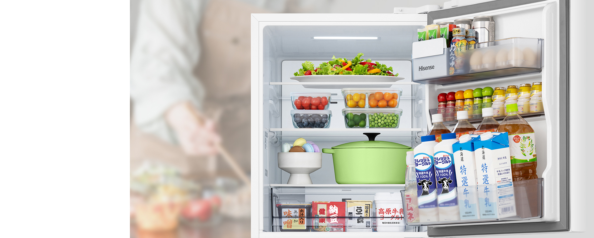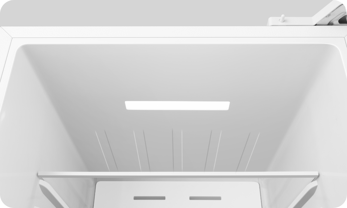 ドアを開けると自動で点灯して庫内を明るく照らし、奥の食材も見つけやすい。