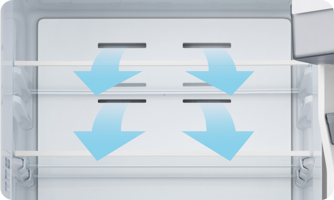 霜取りの手間がかからない、すばやく冷やせるファン式自動霜取り。