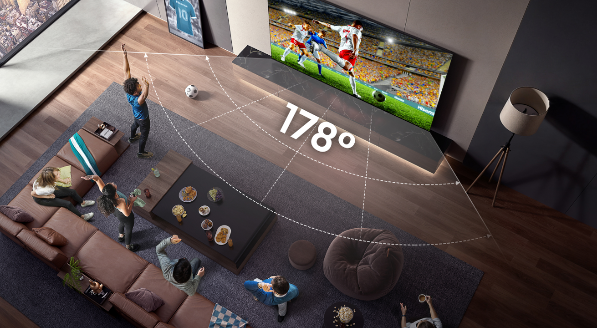 斜めからでも見やすいハイコントラストで高画質な広視野角パネルを採用。テレビを正面から見ることができない場所からも美しい映像が視聴できます。