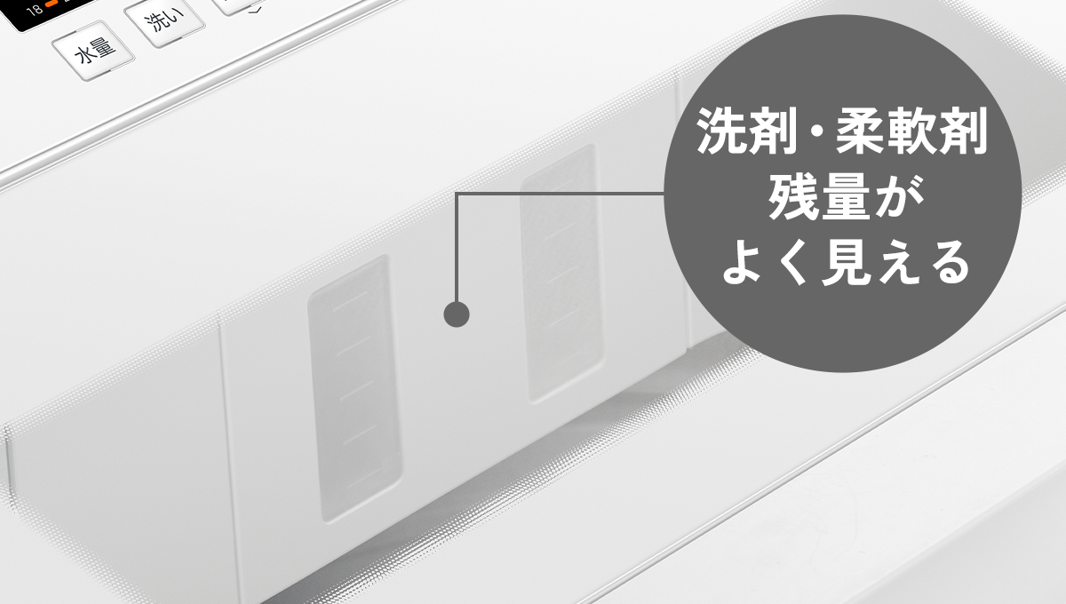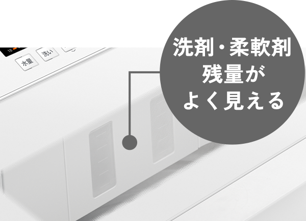 蓋を閉めていても透明窓からタンクの残量や洗濯中の様子がひと目でわかります。