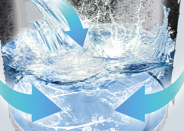 タテヨコからの立体水流で、勢いよく、パワフルに洗浄します。