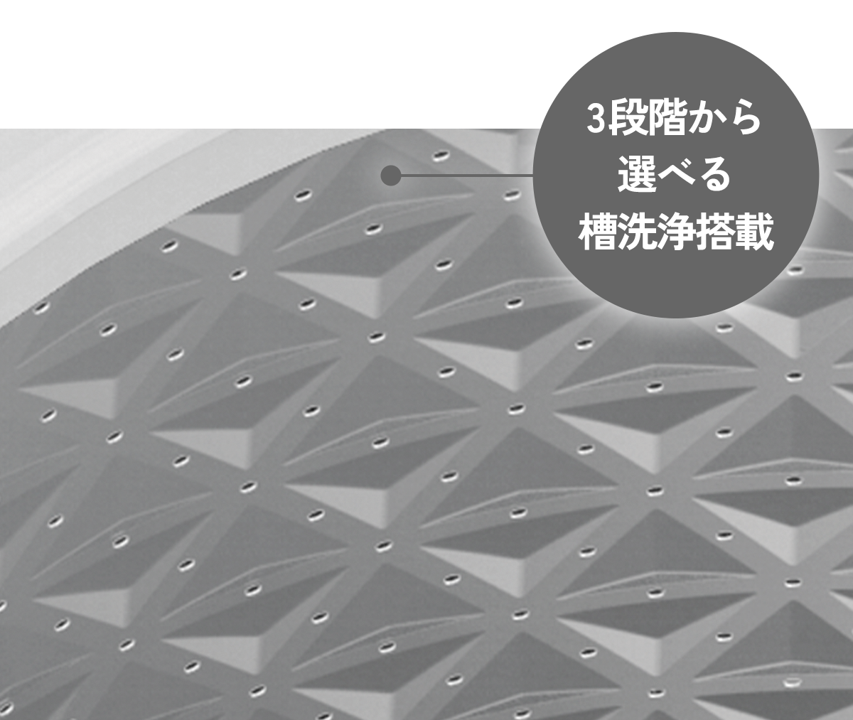 洗濯槽は洗濯板のような独自の凹凸形状で洗浄力もアップ。